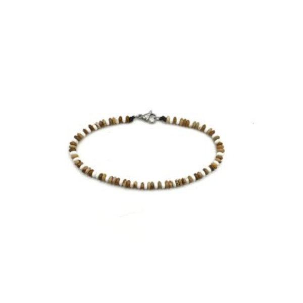 צמיד בעבודת יד בגווני אדמה חמים, עשוי אבני ג׳ספר טבעיות בגימור מט, המשלבות גוונים של שמנת וחום.